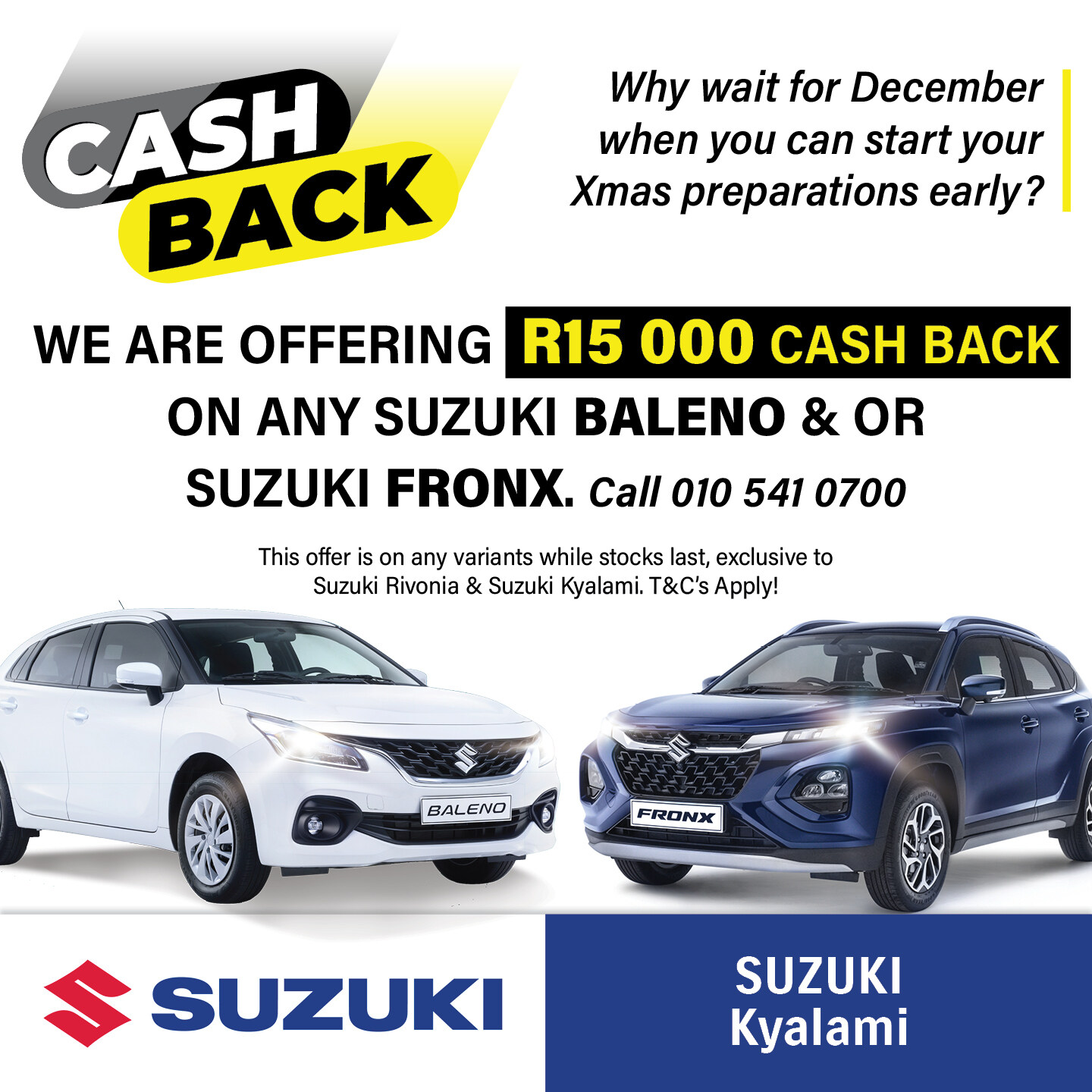 This offer is on any variants while stocks last, exclusive to Suzuki Rivonia and Suzuki Kyalami.